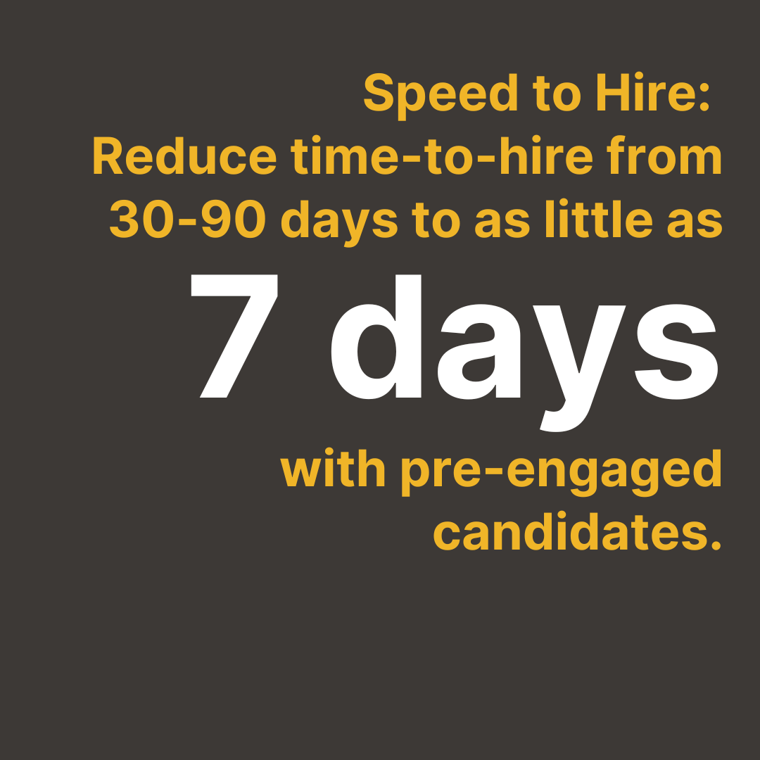 - Ongoing candidate engagement through The AI Talent Engine, keeping warm leads ready for when you need them